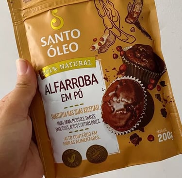 Seu fruto cresce dentro de uma vagem e, após a torragem e moagem, transforma-se em alfarroba em pó — o ingrediente mágico que substitui o cacau em receitas doces, achocolatados e até sobremesas fit.
